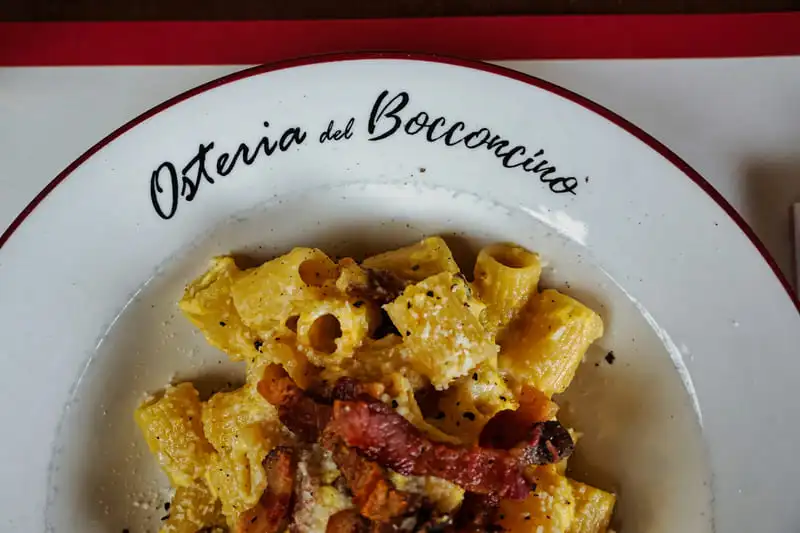 Il Bocconcino era una vecchia stazione di posta. Oggi è rimasto un posto dove fermarsi… ma con la forchetta in mano. E chi entra, anche se turista, esce che sembra romano da tre generazioni!